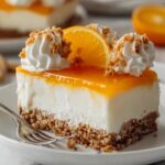 This vibrant Orange Cream Cheesecake combines a smooth, creamy cream cheese filling with a zesty orange twist, all atop a buttery graham cracker crust. Topped with a glossy orange marmalade layer and garnished with whipped cream and fresh orange slices, this dessert offers a perfect balance of sweet and citrus flavors, ideal for any occasion.