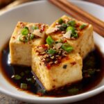 Agedashi tofu isn’t complete without its signature garnishes, which all add layers of flavor and texture. The grated daikon adds a cool, refreshing contrast to the deep umami of the sauce and tofu. Sliced green onions bring a crisp freshness, bonito flakes give a smoky and slightly fishy pop of flavor (optional for vegetarians), and a sprinkle of shredded nori or toasted sesame seeds enhances every bite with a subtle, toasty note.