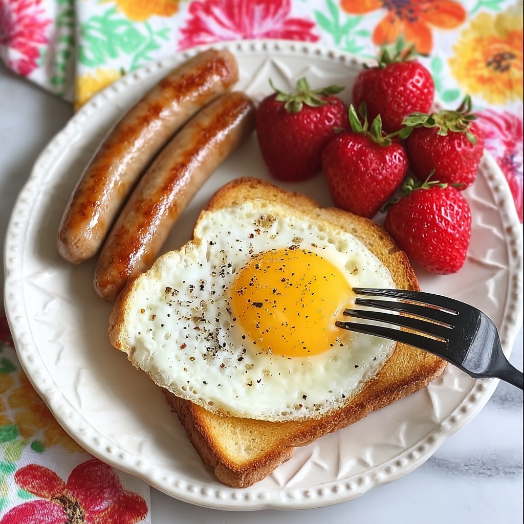 This egg toast pairs perfectly with a simple side salad for a light meal, or a handful of crispy bacon or sausages for a hearty breakfast. Fresh fruit or roasted tomatoes also complement this dish beautifully, balancing savory richness with fresh, juicy brightness.