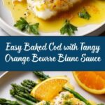 This elegant Baked Cod with Orange Beurre Blanc features tender cod fillets seared to perfection then baked and topped with a luscious, citrusy orange beurre blanc sauce. The combination of flaky fish and the creamy, tangy sauce makes for a sophisticated yet approachable dish perfect for dinner parties or special occasions.