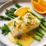 This elegant Baked Cod with Orange Beurre Blanc features tender cod fillets seared to perfection then baked and topped with a luscious, citrusy orange beurre blanc sauce. The combination of flaky fish and the creamy, tangy sauce makes for a sophisticated yet approachable dish perfect for dinner parties or special occasions.