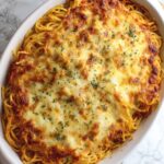 This delicious Baked Spaghetti recipe combines tender cooked spaghetti with a savory meat sauce and creamy cheese layers, baked to perfection and topped with melted mozzarella and Parmesan. Perfect for a comforting family meal, this dish features Italian flavors and a crispy golden cheese crust.
