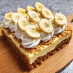 Deliciously creamy Banana Pudding Cheesecake Squares featuring a crisp vanilla wafer crust, a rich banana-infused cheesecake filling blended with instant banana pudding, and topped with a light whipped topping and crushed wafers. Perfectly baked and chilled to create a southern-style dessert that’s ideal for any occasion.