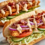 Bird Dog Sandwiches are a tasty and easy-to-make American main course featuring crispy chicken tenders, smoky bacon, and melted cheddar cheese nestled inside toasted hoagie buns. Drizzled with honey mustard for a perfect balance of savory and sweet, these sandwiches are ideal for quick dinners, game day snacks, or family meals.
