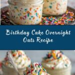 This Birthday Cake Overnight Oats recipe is a delightful, no-cook breakfast that captures the fun and sweetness of a birthday cake. Combining rolled oats with creamy Greek yogurt, almond milk, chia seeds, and a touch of vanilla and almond extracts, this nutritious dish is sweetened naturally with maple syrup or honey and topped with colorful rainbow sprinkles for a festive look. Perfectly prepared the night before, it offers a quick, easy, and delicious start to your day with minimal effort.