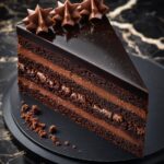 Adorn the finished cake with black cherries, blackberries, and a sprinkle of purple and gold. These vibrant accents add both elegance and a subtle tartness that balances the deep cocoa flavors, making this cake as delightful to look at as it is to eat.