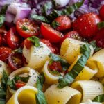 A refreshing and flavorful Bruschetta Pasta Salad combining al dente pasta with juicy cherry tomatoes, red onion, fresh basil, garlic, and a zesty balsamic vinaigrette. This easy-to-make salad is perfect as a light lunch or a side dish and can be served immediately or chilled for extra coolness.