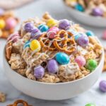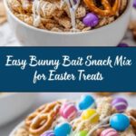 Bunny Bait is a sweet and salty snack mix perfect for Easter celebrations or anytime you want a delightful treat. This crunchy mix combines pretzels, cereals, peanuts, pastel M&M’s, and sprinkles all coated in smooth white chocolate, creating a colorful and festive snack that’s irresistibly tasty and easy to prepare.