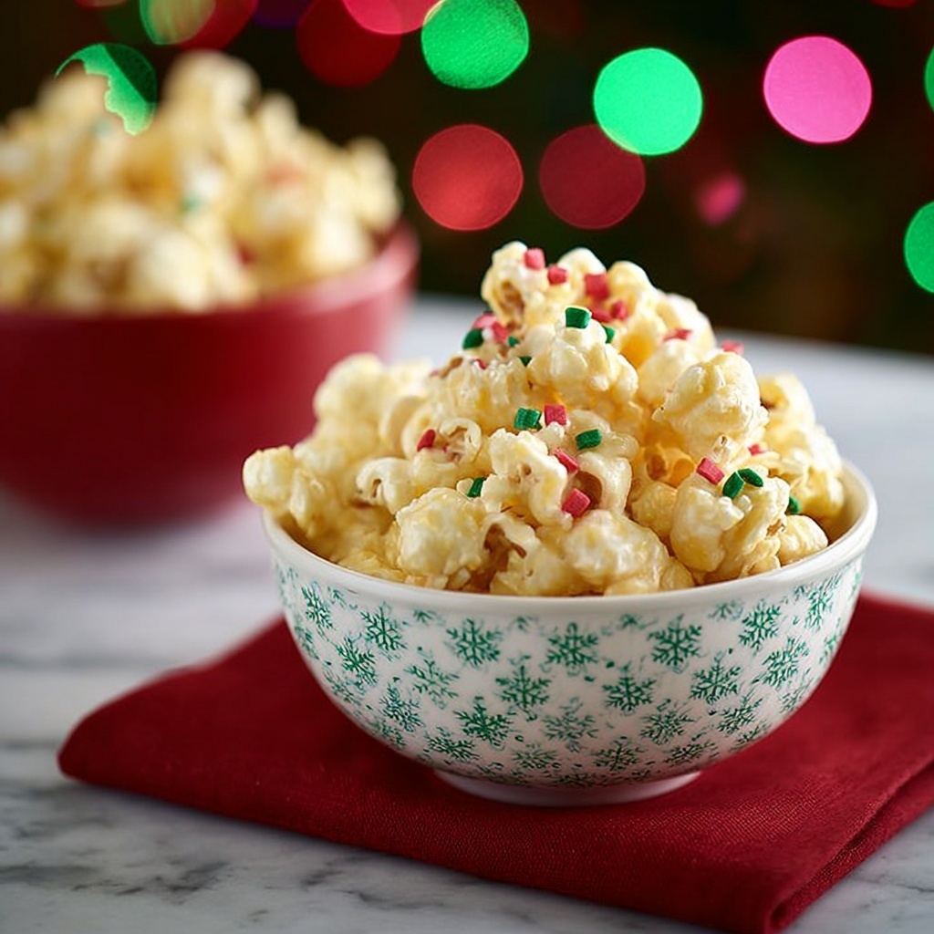 Candied Puff Corn, also known as Christmas Crack, is a delightful holiday treat featuring crunchy butter-flavored puff corn coated in sweet vanilla candy coating and topped with festive sprinkles. This easy no-cook snack is perfect for holiday parties, gift-giving, or a sweet snack anytime during the season.