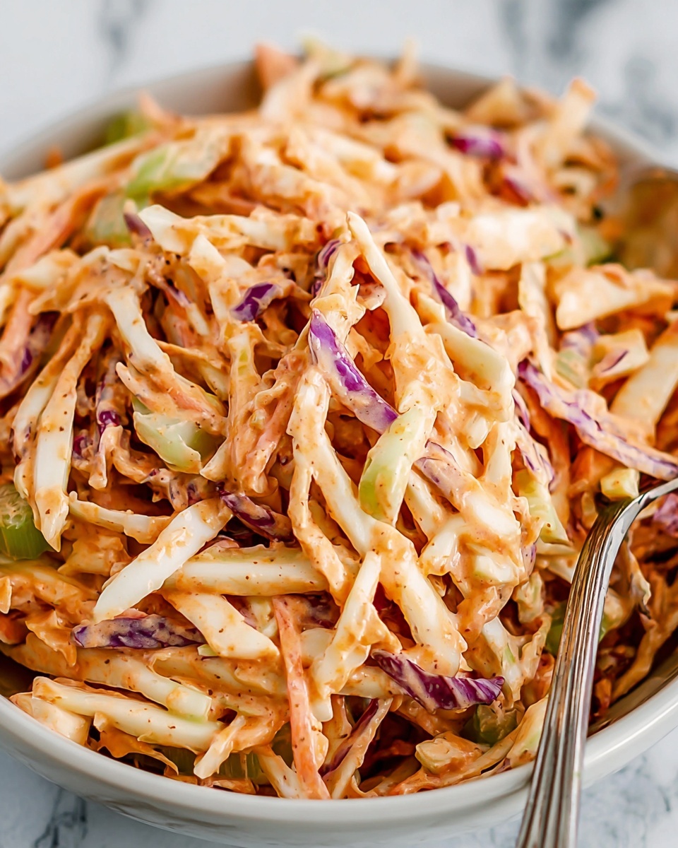 Keep any leftover slaw in an airtight container in the refrigerator. It will happily stay fresh for up to 4 days, making it a convenient option for quick meals or later gatherings.