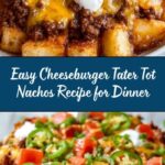 Cheeseburger Tater Tot Nachos combine crispy baked tater tots with seasoned ground beef, melted cheddar and mozzarella cheese, and classic cheeseburger toppings like pickles, tomatoes, onion, ketchup, and mustard. This fun and flavorful dish makes for a perfect appetizer or casual meal that’s easy to prepare in under 40 minutes.