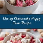 Cherry Cheesecake Puppy Chow is a delightful, no-bake snack mix that combines crunchy Rice Chex cereal coated in a creamy, white chocolate and cherry jam blend, dusted with powdered sugar and graham cracker crumbs, making it perfect for dessert cravings or party treats.