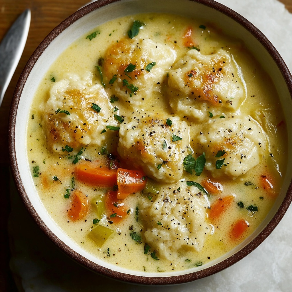 This comforting Chicken and Dumpling Soup combines tender chicken, fresh vegetables, and fluffy homemade dumplings simmered in a flavorful broth. Perfect for a cozy meal, the soup features a hearty mix of carrots, celery, peas, and traditional seasonings, delivering warmth and satisfying taste in every bowl.