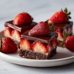 Delight in these rich and fudgy Chocolate Covered Strawberry Brownies, featuring a luscious homemade chocolate ganache topping fresh, juicy strawberries. Baked in an 8×8 inch pan, these brownies are perfect for any chocolate lover craving a fruity twist. The ganache is made with semi-sweet chocolate and heavy cream, poured over the strawberries and chilled to set, creating a glossy, decadent finish.