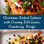 Christmas Baked Salmon with Creamy Dill Sauce, Cranberry Orange Tapenade, and Pomegranate Garnish Recipe