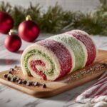 - Garnish and serve: Before serving, dust the cake roll with powdered sugar and decorate with sprinkles, chocolate shavings, or festive holiday decorations as preferred.