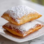 Drain your freshly fried beignets on paper towels to remove excess oil, then generously dust them with powdered sugar while they’re still warm. This sweet snow-like coating is the Classic New Orleans Beignets Recipe’s signature finish and the moment where your kitchen starts to smell like a classic French Quarter patisserie.