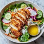 This salad stands well on its own but pairs beautifully with lighter sides like crusty artisan bread or a simple quinoa pilaf. For a heartier meal, consider serving alongside grilled shrimp or a light soup such as chilled cucumber gazpacho, which complements the salad’s warm and crispy chicken with refreshing coolness.