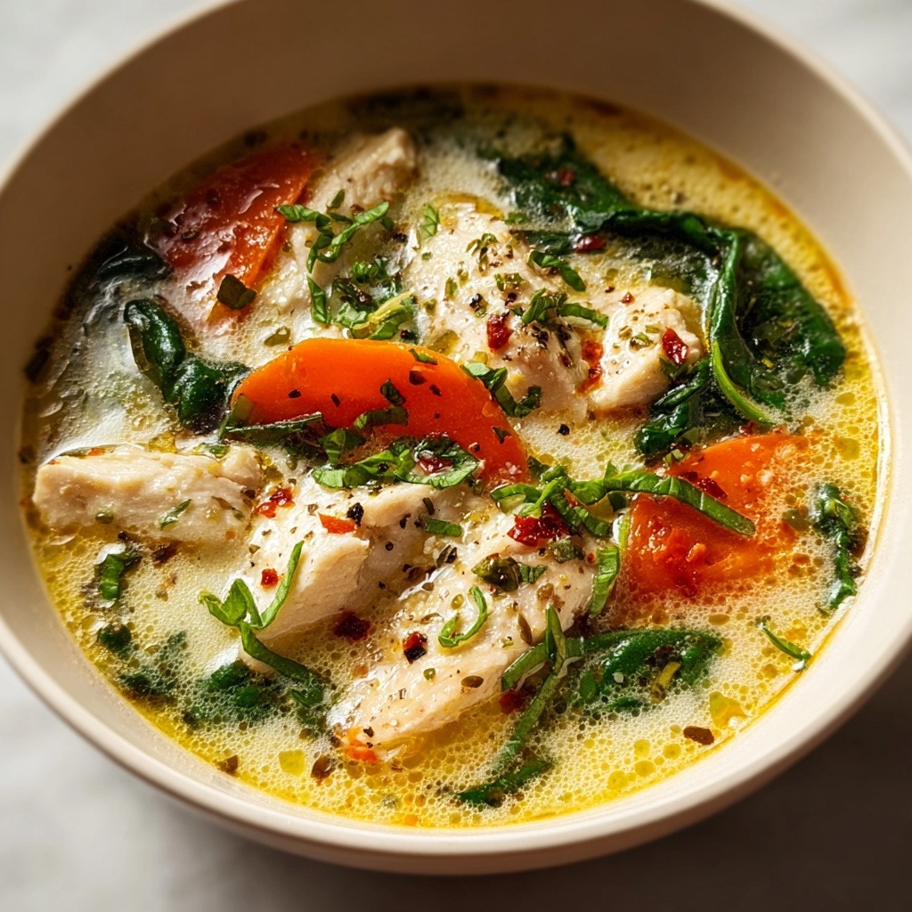 If you are craving something that wraps you in warmth and makes every spoonful feel like a gentle hug, look no further than this Creamy Marry Me Chicken Soup: Pure Comfort Bliss! This soup blends tender shredded chicken with a velvety cream base, brightened with fresh vegetables and aromatic herbs. It’s comfort food elevated to a whole new level, perfect for cozy nights or anytime you want to feel truly nurtured. The Parmesan cheese adds an irresistible richness, while the baby spinach introduces a touch of freshness, making it a dish that never feels heavy but always satisfies deeply.