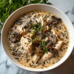 This Creamy Mushroom Chicken and Wild Rice Soup is a comforting and hearty dish perfect for cozy meals. Tender shredded chicken, earthy mushrooms, and nutty wild rice simmered in a creamy broth infused with thyme and sage create a rich and satisfying soup that’s both flavorful and nourishing.
