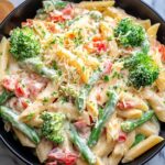 This Creamy Pasta Primavera Recipe doesn’t freeze as well due to the cream sauce, which can separate upon thawing. It’s best enjoyed fresh, but if you must freeze, consider freezing just the pasta and vegetables without the sauce and prepare the sauce fresh later.
