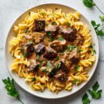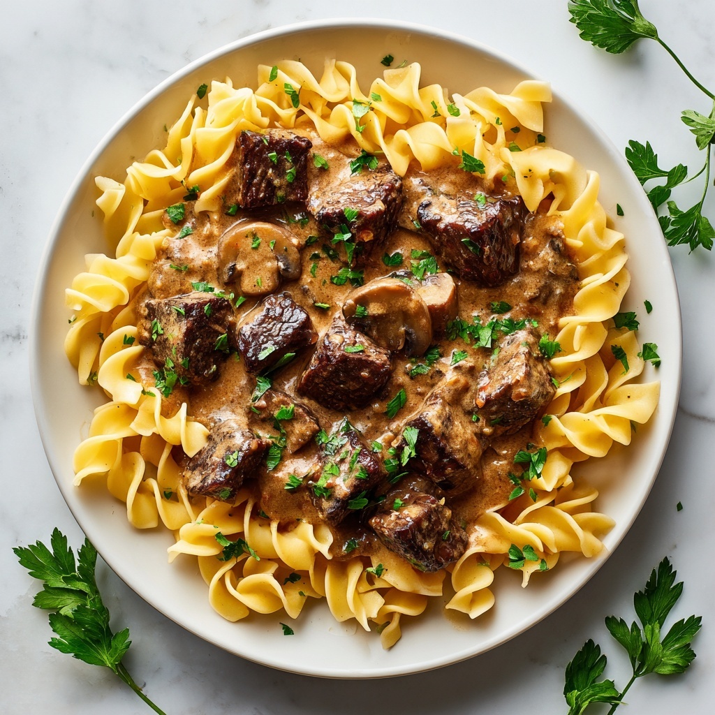 Elevate your presentation by serving the stroganoff in rustic bread bowls for fun, edible “plates.” Alternatively, try layering it over mashed potatoes or creamy polenta for a beautiful twist that still delivers all the comfort and creaminess packed in the classic recipe.