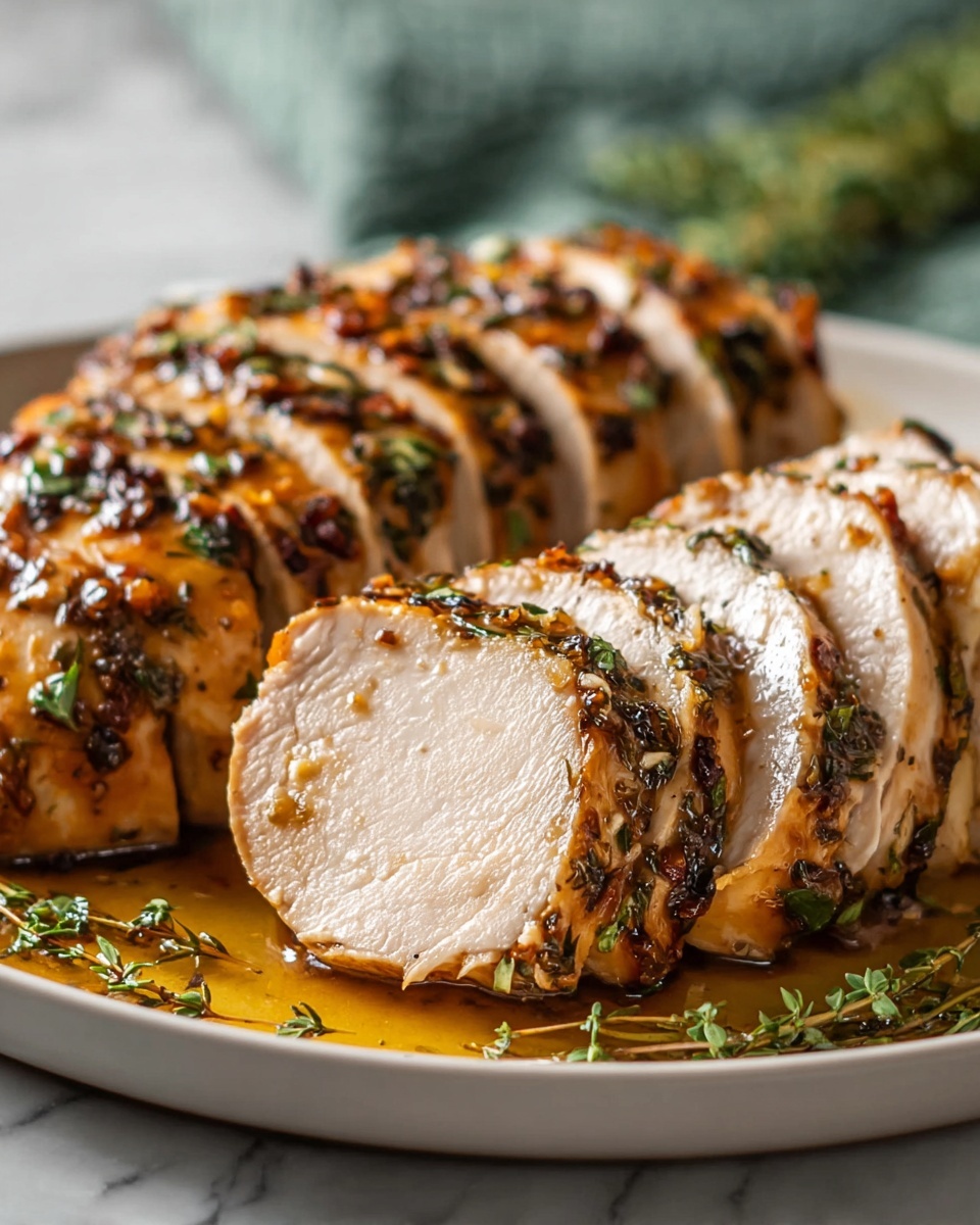 - Garnish and serve: Sprinkle chopped fresh parsley over the chicken for a fresh herbal note. Serve warm with optional lemon wedges to brighten the dish as desired.
