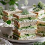 For an extra touch of elegance and flavor, sprinkle your cucumber slices with a pinch of flaky sea salt before closing the sandwiches. Alternatively, fresh microgreens or a tiny sprig of dill add a beautiful pop of green and a hint of freshness that’s sure to impress your guests.