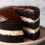 This Decadent Black Velvet Cake is a rich and moist two-layer chocolate cake made with dark cocoa powder for an intense color and flavor. The recipe features a tender crumb enhanced by buttermilk and a smooth, creamy chocolate buttercream frosting. Perfect for special occasions, this elegant cake is beautifully finished with optional garnishes like chocolate shavings or fresh berries.
