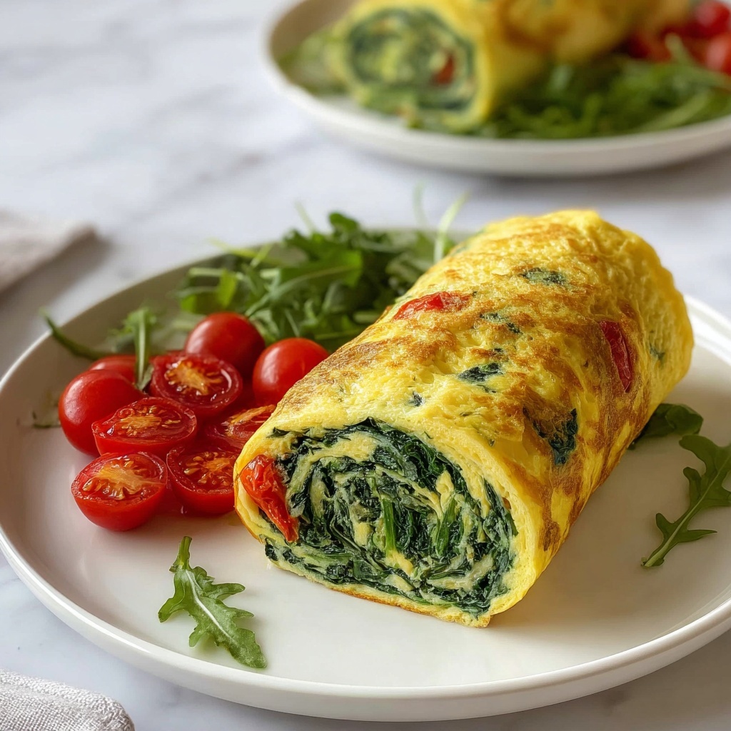 This rolled spinach omelet pairs wonderfully with crisp mixed greens tossed in a simple vinaigrette or a side of roasted cherry tomatoes. For a heartier meal, serve alongside toasted whole-grain bread or crispy breakfast potatoes to balance the softness of the omelet with a satisfying crunch.