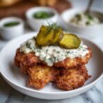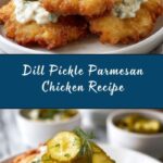 Dill Pickle Parmesan Chicken is a flavorful and crispy baked chicken dish, marinated in tangy dill pickle juice and coated with a savory Parmesan and panko breadcrumb crust. This easy-to-make American main course offers a perfect balance of zest and crunch, ideal for a weeknight dinner or casual gathering.