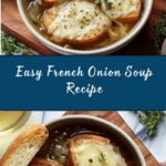 A classic and comforting Easy French Onion Soup featuring caramelized onions simmered in a rich beef broth, topped with toasted French bread and melted Gruyère cheese, perfectly broiled for a golden, bubbly finish.