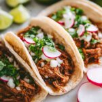The joy of carnitas comes alive with fresh, colorful garnishes. Chopped onions, sliced radishes, fresh cilantro, and lime wedges add crunch, herbal brightness, and acidity that perfectly balance the rich pork. Don’t forget a drizzle of hot sauce or a dollop of creamy guacamole if you like some extra oomph.