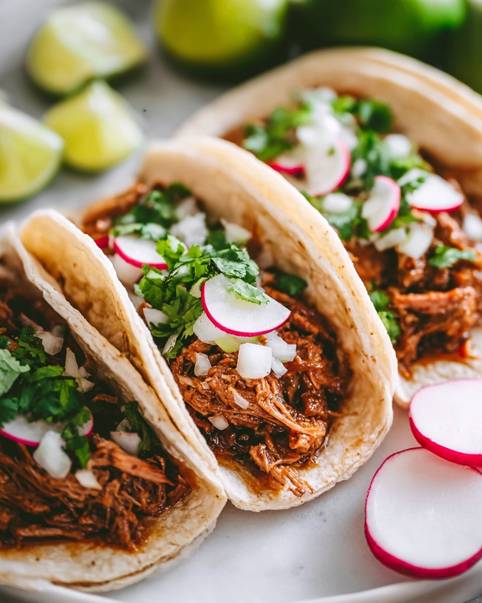 - Optional toppings and sides (tortillas, chopped onion, sliced radish, cilantro, lime wedges): Perfect to customize your tacos or carnitas bowls.