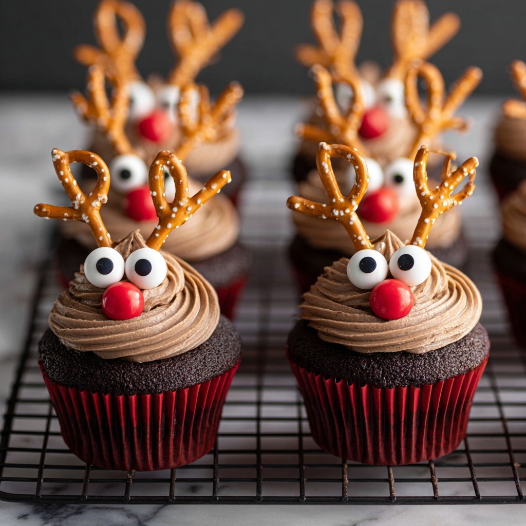 To add even more whimsy and texture, consider dusting the cupcakes lightly with powdered sugar for a snow-kissed effect. Sprinkles in red, green, or gold can add a cheerful pop of holiday color. You might also add small edible stars or snowflakes to enhance the festive vibe. These garnishes bring visual excitement that makes the Easy Reindeer Cupcakes Recipe even more irresistible.
