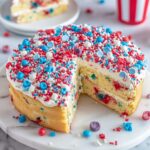 Celebrate any occasion with this festive Fireworks Sugar Cookie Cake, featuring a soft, buttery cookie base speckled with colorful red, white, and blue sprinkles. Easy to make and perfect for sharing, this dessert delivers classic sugar cookie flavors in a delightful cake form that’s great for patriotic holidays or fun gatherings.