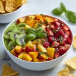 Once the cinnamon chips are cooling, stir the chopped fresh basil into your chilled fruit salsa. The basil’s herbal notes bring an unexpected but delightful brightness to the mix. Serve the salsa in a pretty bowl surrounded by your warm cinnamon chips for dipping – a combo that’s balanced in sweet, tart, and spicy crunch.