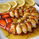 Heat your oven’s broiler to high. Place the lobster tails on a baking sheet and brush generously with the garlic butter. Broil for about 8 to 10 minutes until the lobster meat turns opaque and just cooked through. Don’t forget to baste with more garlic butter halfway to keep it extra moist and bursting with flavor. Garnish with fresh parsley and serve with bright lemon wedges.