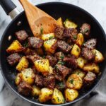 This Garlic Butter Steak Bites with Herb Potatoes recipe features tender sirloin steak cubes seared in rich garlic butter, paired with perfectly seasoned and tender Yukon Gold potatoes infused with garlic and herbs. Ready in just 20 minutes, this dish is a flavorful and satisfying meal perfect for a quick weeknight dinner or special occasion.