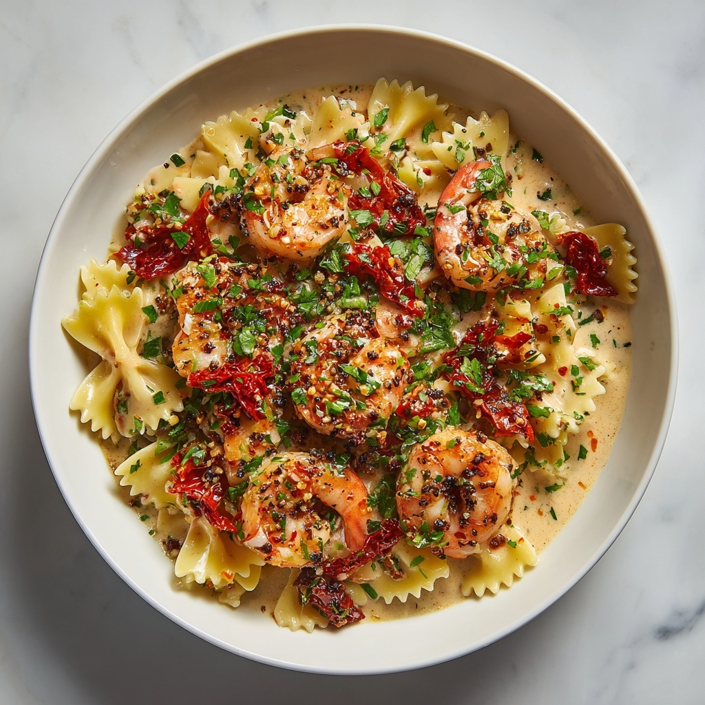To reheat, warm gently on the stovetop over low heat, adding a splash of cream or reserved pasta water if the sauce needs loosening. Avoid microwaving at high power as shrimp can toughen, and the sauce might separate.