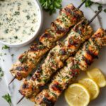 Greek Lemon Chicken Skewers marinated with aromatic herbs and spices, grilled to perfection, and served with a refreshing homemade Tzatziki sauce made from Greek yogurt, cucumber, lemon, and fresh dill. This dish offers a flavorful, light, and healthy Mediterranean meal ideal for gatherings or a satisfying dinner.