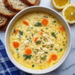 This Greek Lemon Chicken Soup, known as Avgolemono, is a comforting and creamy soup made with tender chicken, orzo pasta, fresh vegetables, and a tangy lemon-egg sauce. Perfect for warming up on chilly days, this traditional recipe balances bright citrus flavors with soothing broth and fresh dill, delivering a wholesome, satisfying meal in just under an hour.