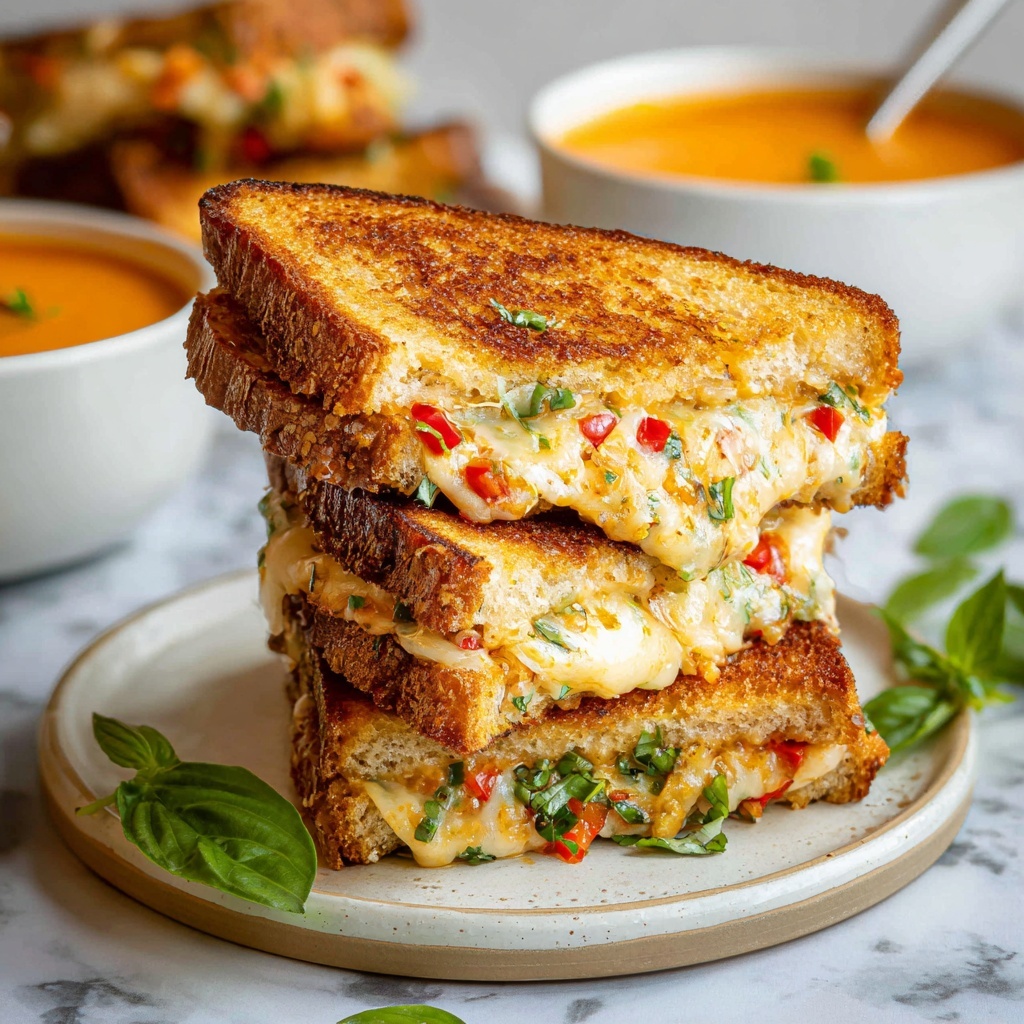 Heat a large skillet or griddle over medium heat. Place the sandwiches on the pan and cook for 3 to 4 minutes per side, pressing slightly with a spatula to help everything meld together wonderfully. Flip carefully and continue until the bread is a gorgeous golden brown and the cheese inside is beautifully melted. Then, slice and serve immediately for maximum gooey goodness.