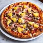 This Hawaiian Pizza recipe features a crispy golden crust topped with savory cooked bacon and ham, sweet fresh pineapple, melty shredded mozzarella cheese, and optional shiitake mushrooms for added earthiness. Finished with fresh basil and a touch of black pepper, it’s a delicious blend of sweet and savory flavors perfect for a quick homemade meal.