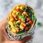 - Assemble the Burritos: Lay out the whole wheat tortillas and distribute the roasted vegetable mixture, black beans, and scrambled eggs evenly among them. Add your favorite toppings such as salsa, avocado, or hot sauce. Wrap each tortilla tightly to form a burrito.