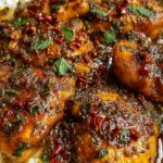 Sprinkle in the chili flakes and chopped parsley, stirring gently to distribute the heat and fresh herbal aroma. This final step brings a perfect balance of sweet, spicy, and fresh notes that makes this Honey Garlic Chicken Recipe truly unforgettable.