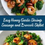A quick and flavorful Honey Garlic Shrimp, Sausage & Broccoli skillet recipe perfect for a weeknight dinner. Juicy shrimp and smoky sausage are cooked with tender-crisp broccoli and coated in a deliciously sticky honey garlic sauce with a hint of lemon and optional heat from red pepper flakes.