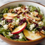 A fresh and vibrant Honeycrisp Apple and Feta Salad combining crisp apple slices, tangy feta cheese, crunchy walnuts, and sweet dried cranberries, all tossed in a light honey apple cider vinaigrette. Perfect for a quick, healthy, and flavorful meal or side dish.