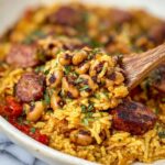 Hoppin’ John Casserole is a flavorful Southern-inspired dish combining smoky sausage, seasoned dirty rice, creamy components, and black-eyed peas. This comforting casserole is perfect for a hearty dinner and brings together traditional ingredients in an easy-to-make baked dish.