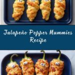 Spooky and delicious Jalapeño Popper Mummies are the perfect Halloween appetizer, featuring creamy cheese-filled jalapeños wrapped in golden, flaky crescent roll dough and decorated with cute candy eyes for a fun and festive touch.